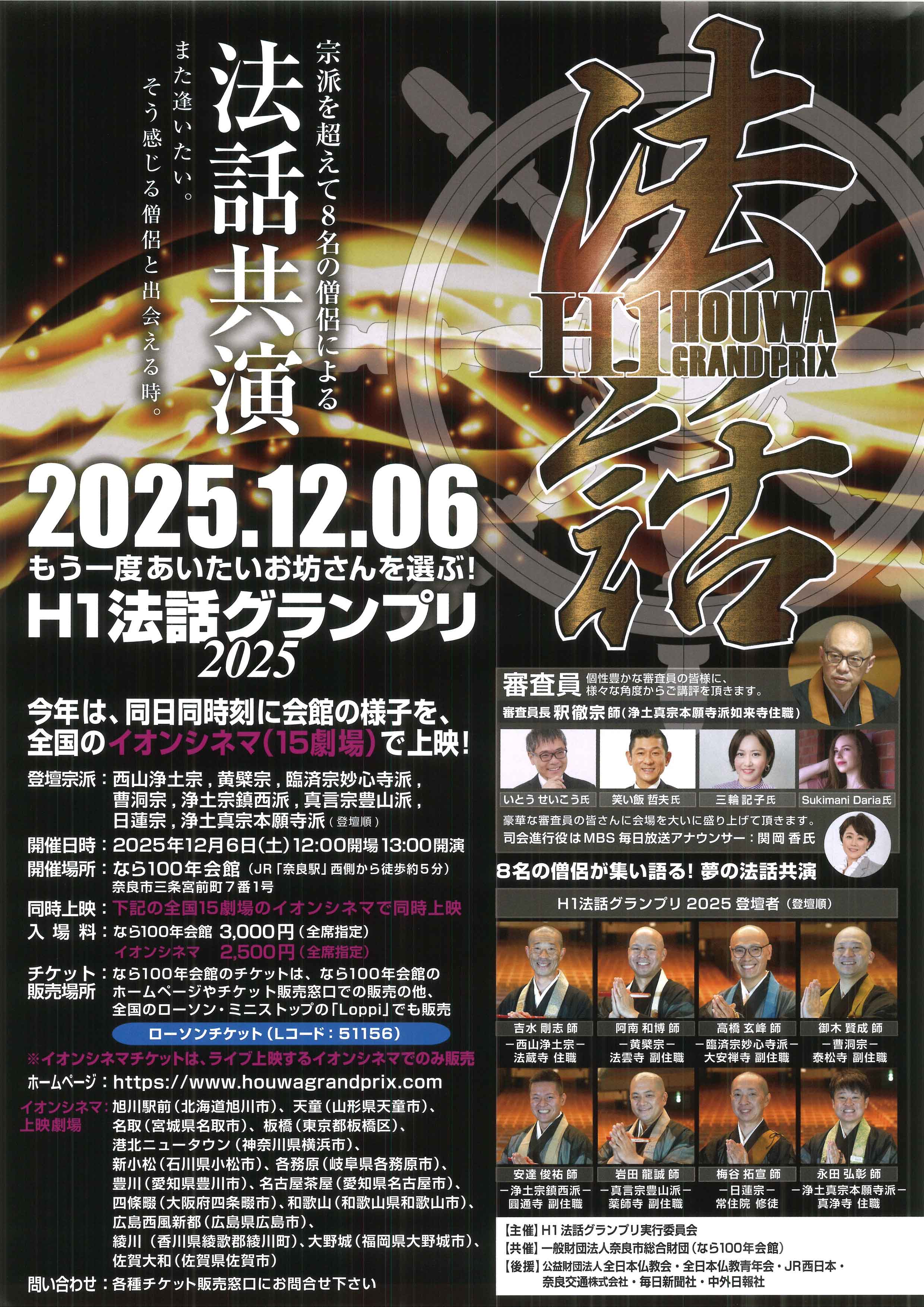 なら100年会館にて、「H-1 法話グランプリ2025」が執り行われます。