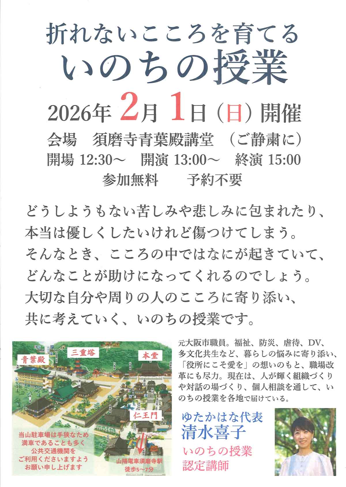 令和8年2月1日(日)青葉殿講堂にて「折れないこころを育てる いのちの授業」が執り行われます。